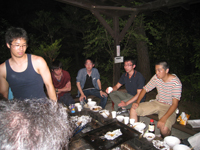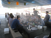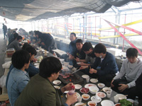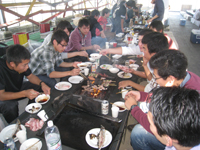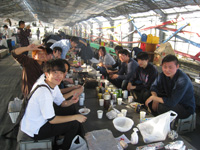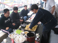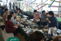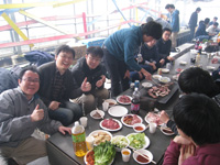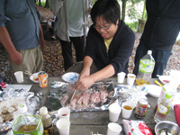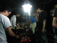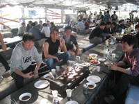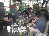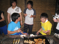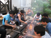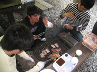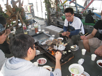 | 4月:バードハミング鳥越でBBQ(他の研究室の人たちもあわせて60人で開催!たたきがついに成功!) |