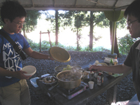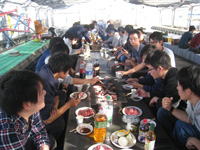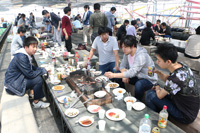 | 4月:松任グリーンパークでBBQ(他の研究室の人たちもあわせて120人で開催!タケノコご飯がおいしかったです.) |